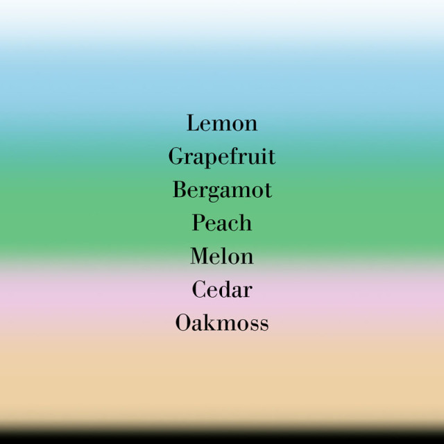 Un équilibre parfait de bergamote, de citron et de pamplemousse, facetté par des traces de pêche et d'abricot procurent une fraîcheur tonique, alors que la mousse de chêne et le patchouli offrent un contraste à ce paysage d'été, qui n'est pas sans rappeler celui des pétales blancs sur fond de ciel bleu électrique.